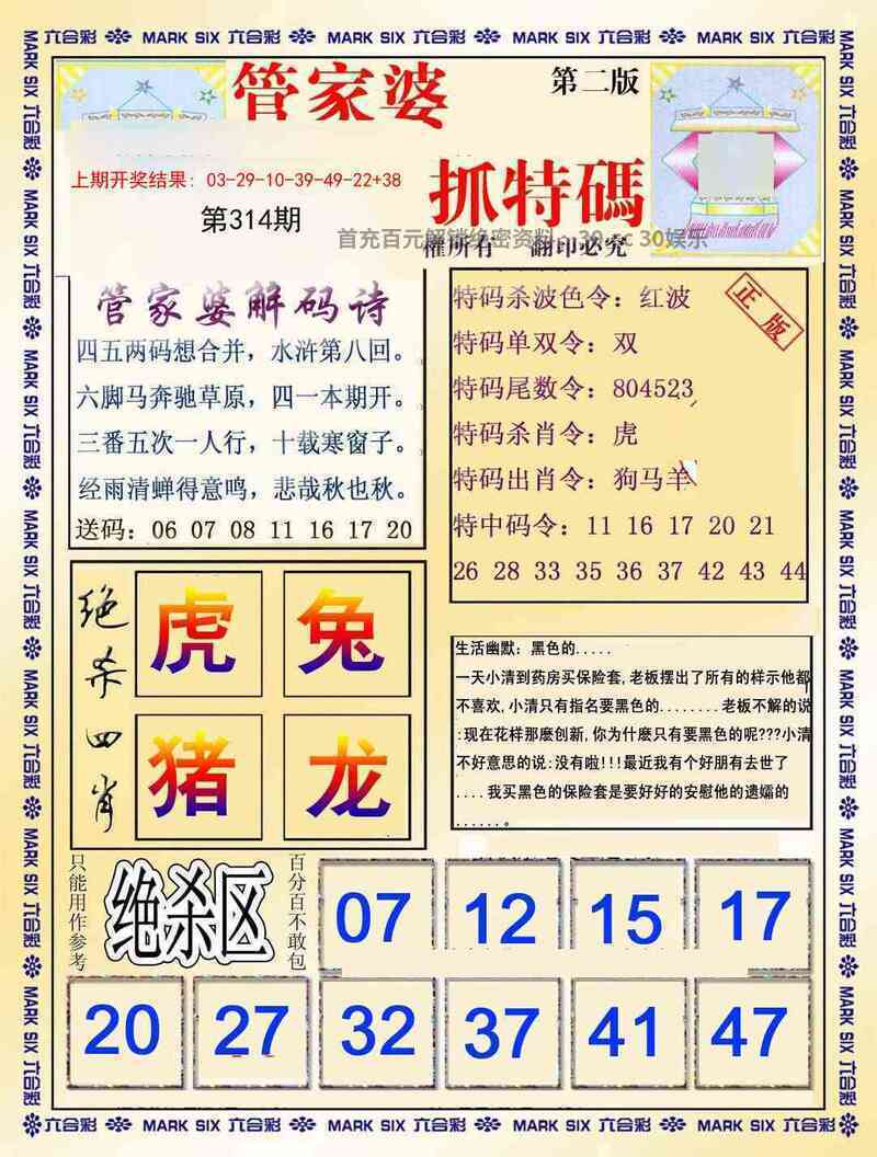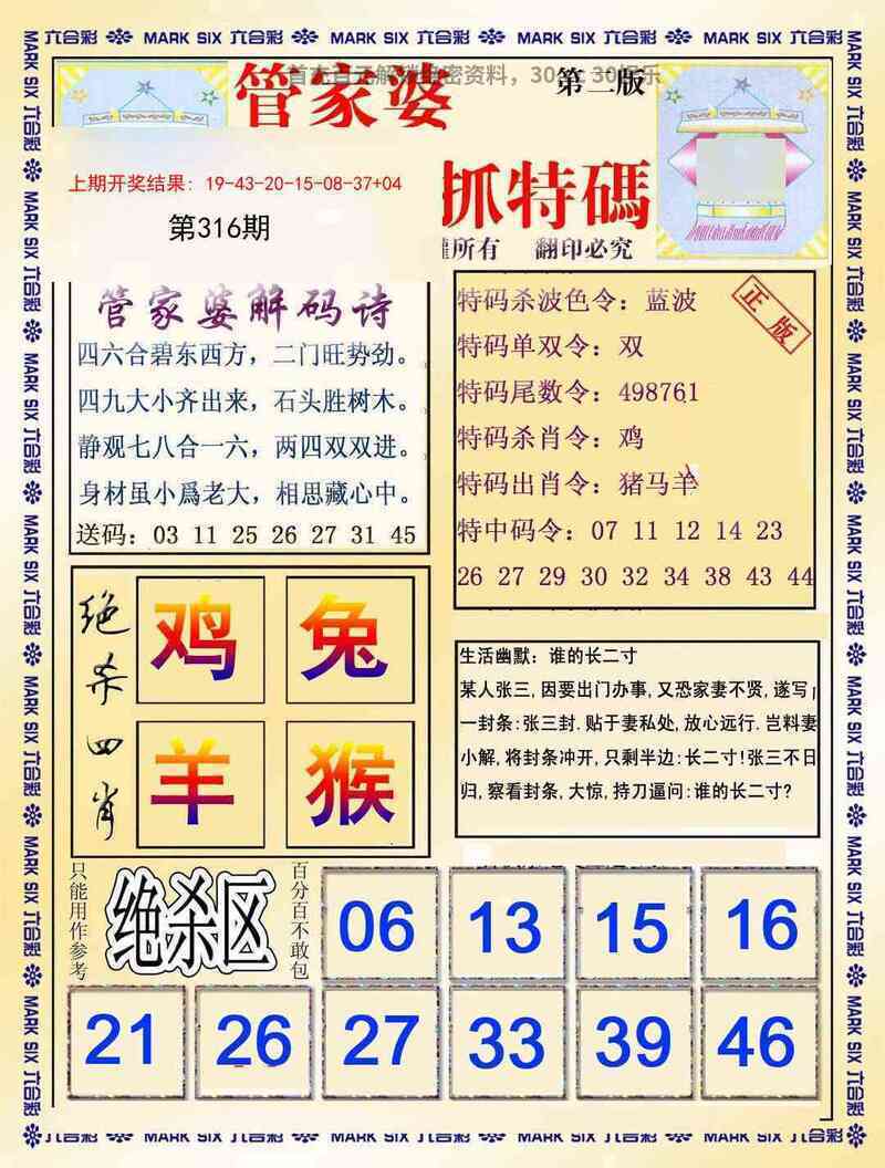 317期:特码暗语/曾道人救世心经/攻特料/六合心经/平码生肖点将