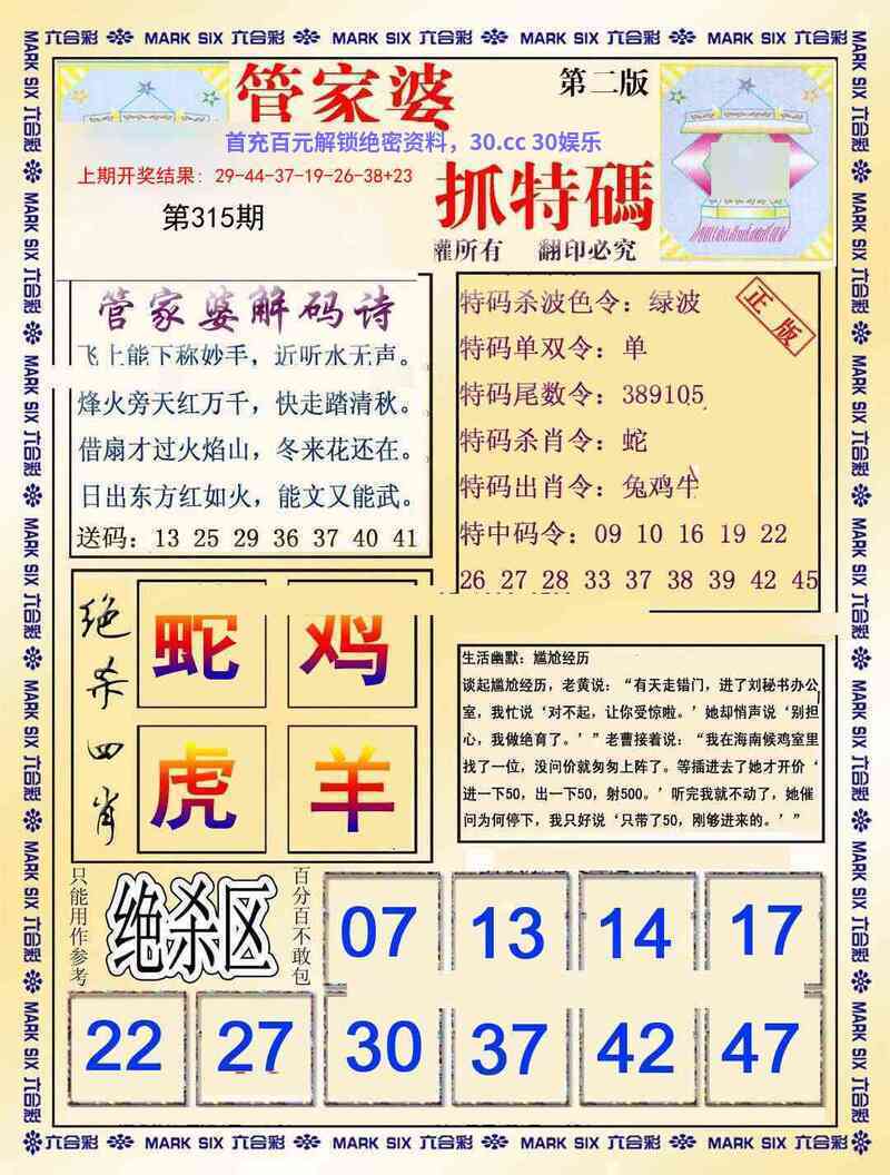 317期:必中天机/特七决/正版欲钱料/特码生肖诗/澳门天机诗